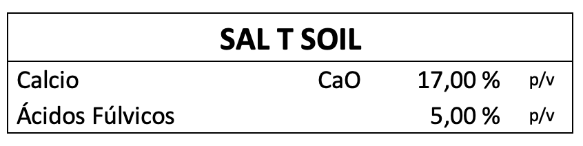 Cuando se aplica vía foliar, SAL T SOIL es absorbido con gran rapidez gracias a su contenido de ácidos fúlvicos y enlaces con aminoácidos, que encapsulan el nutriente para mejorar su movilidad y aprovechamiento. Esta acción favorece la síntesis de peptato de calcio, fortaleciendo las paredes celulares y mejorando la respuesta de la planta ante estímulos hormonales de crecimiento, lo que se traduce en cultivos más sanos, resistentes y productivos.